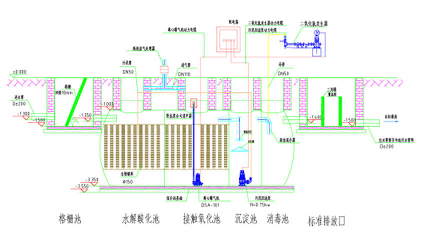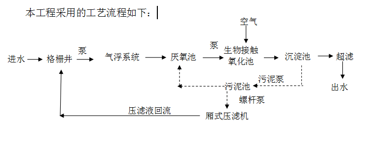 2021-11-16 23:03:25采用一體化污水處理工藝,污水進(jìn)入生活污水處理設(shè)施后首先經(jīng)過(guò)格柵攔除漂浮物,后進(jìn)入酸化水解池進(jìn)行酸化預(yù)處理,利用池中的厭氧菌和兼性菌將污水中的有機(jī)質(zhì)降解, A段生化反應(yīng)出出水再流入O段生物反應(yīng)池,O段生物反應(yīng)池采用推流式接觸氧化工藝,經(jīng)過(guò)該單元處理后,污水中的有機(jī)物將被有效去除,然后自流進(jìn)入二沉池沉淀。污...2021-11-16 23:03:06生活污水通過(guò)格柵攔截,對(duì)污水進(jìn)行預(yù)處理,目的是初步降低無(wú)機(jī)顆粒物質(zhì)的含量,提高污水的同一性和可生化性;由于水量的不均勻性所以要設(shè)置調(diào)節(jié)池。接著通過(guò)缺氧好氧A/O(生物接觸氧化)法,利用生物膜的作用使有機(jī)污染物首先轉(zhuǎn)化為氨氮,同時(shí)通過(guò)好氧硝化和缺氧反硝化過(guò)程既去除有機(jī)物又去除了氨氮。生化池配以新型的高密型...2021-11-16 23:02:391.工藝流程簡(jiǎn)述由于產(chǎn)生的污水的有機(jī)物濃度較高,可生化性較好,采用的主體工藝為氣浮+厭氧+好氧+反滲透。生產(chǎn)車(chē)間產(chǎn)生的廢水經(jīng)管道進(jìn)入格柵井,首先經(jīng)格柵去除水中的大顆粒物質(zhì),接著用泵提升進(jìn)入氣浮系統(tǒng),廢水在氣浮系統(tǒng)中經(jīng)過(guò)加藥PAC、PAM及酸堿調(diào)和作用下,去除大部分懸浮物及水中COD及BOD,接著廢水用泵抽入?yún)捬醭剡M(jìn)...2021-11-16 23:02:17本污水處理系統(tǒng)采用前端物理攔劫+中段生物處理(生物接觸氧化法)+后端自然沉淀和接觸消毒的處理工藝具有工藝技術(shù)先進(jìn)成熟,安全性高。同時(shí)污水處理設(shè)備采用自動(dòng)控制與手動(dòng)控制模式相結(jié)合,控制模式可靈活設(shè)置,運(yùn)行管理方便,運(yùn)轉(zhuǎn)靈活、設(shè)置酸化水解調(diào)節(jié)池對(duì)進(jìn)水水量、水質(zhì)的變化有相應(yīng)的抗沖擊能力及應(yīng)變能力。醫(yī)療廢...
